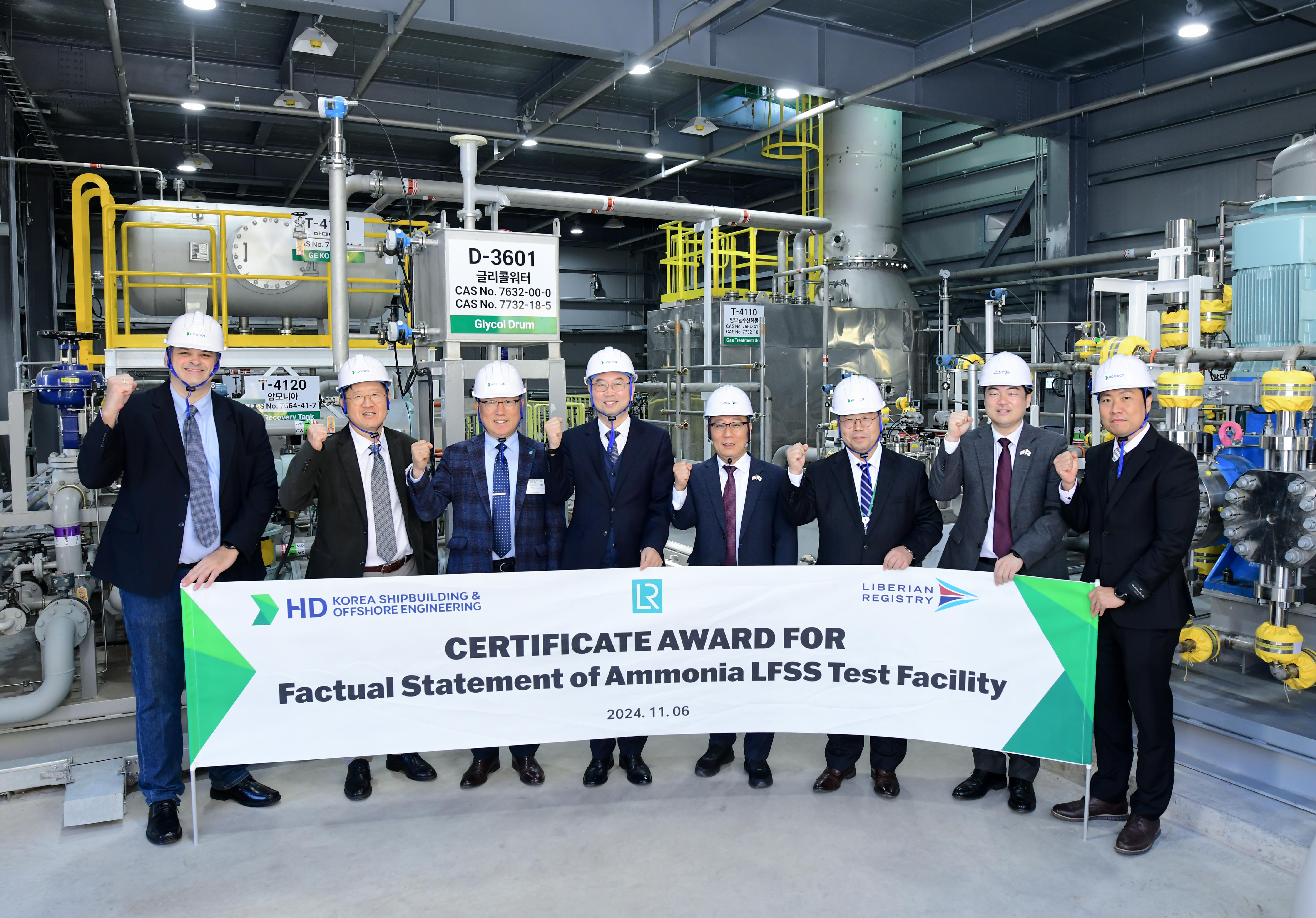 Le 6 novembre 2024, HD Korea Shipbuilding & Offshore Engineering (HD KSOE) a annoncé avoir obtenu les Approvals in Principle (AIP) de Lloyd's Register (LR) et du Liberian International Ship & Corporate Registry (LISCR) pour son système d'opération de cargaison d'ammoniac et son système d'approvisionnement en carburant à l'ammoniac, qui peuvent être utilisés conjointement avec le GPL (gaz de pétrole liquéfié).