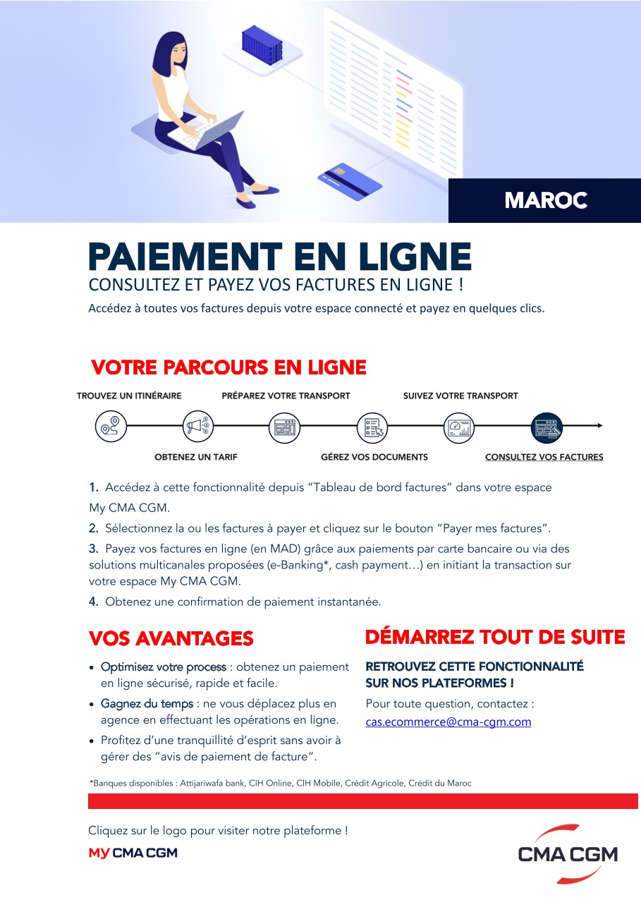 CMA CGM Maroc propose une solution de paiement électronique E-Payement à ses clients