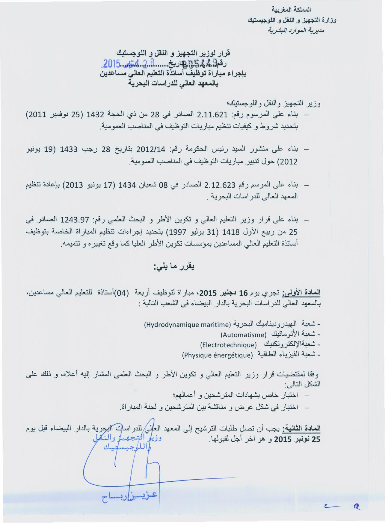 En effet l’ISEM, vient de lancer une opération de recrutement de 4 professeurs assistants de l’enseignement supérieur avec des spécialités dans l’hydrodynamique, l’automatisme, l’électrotechnique et la physique énergétique, comme si on voulait assimiler un institut de formation maritime en faculté des sciences et techniques de l’enseignement supérieur.