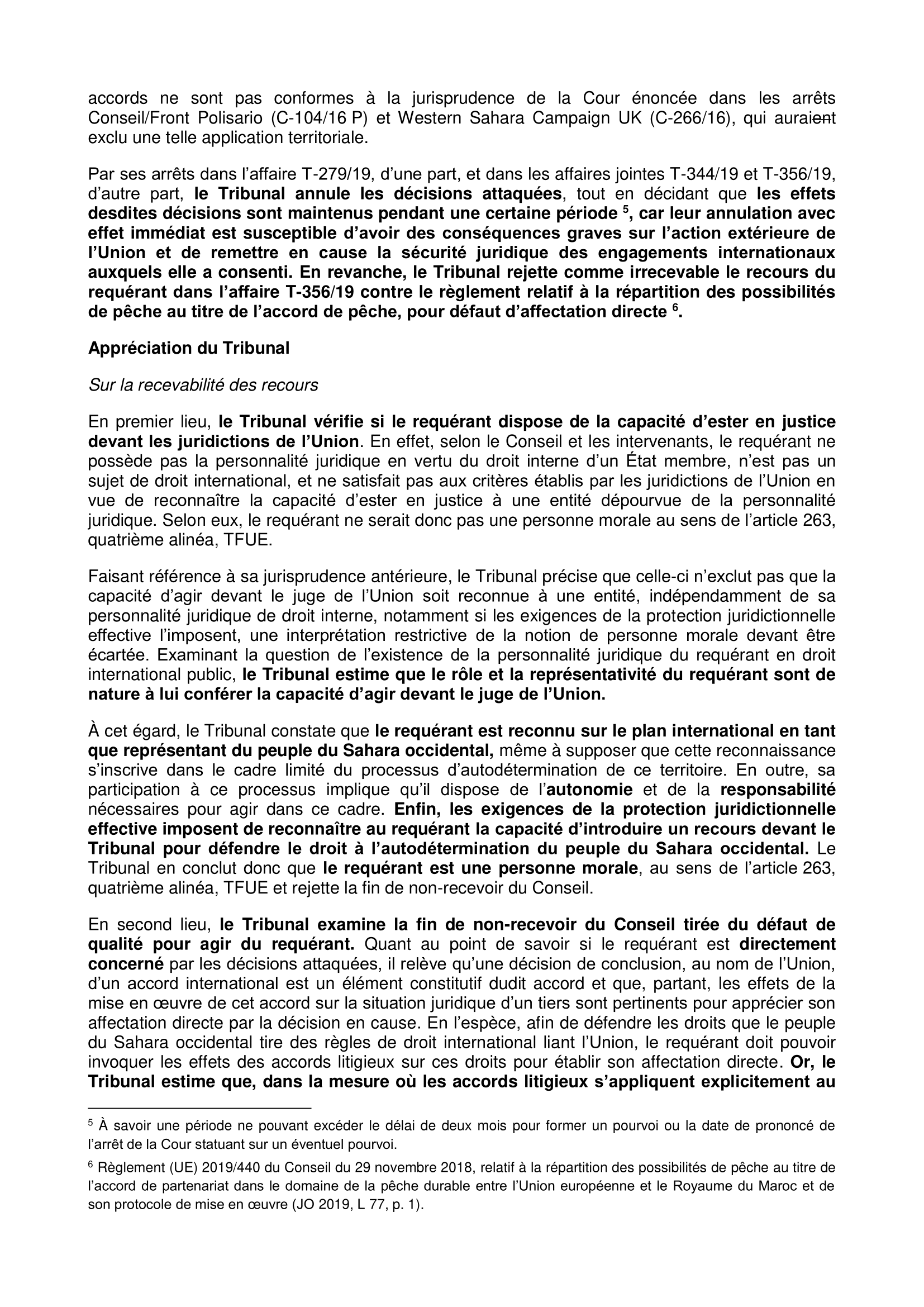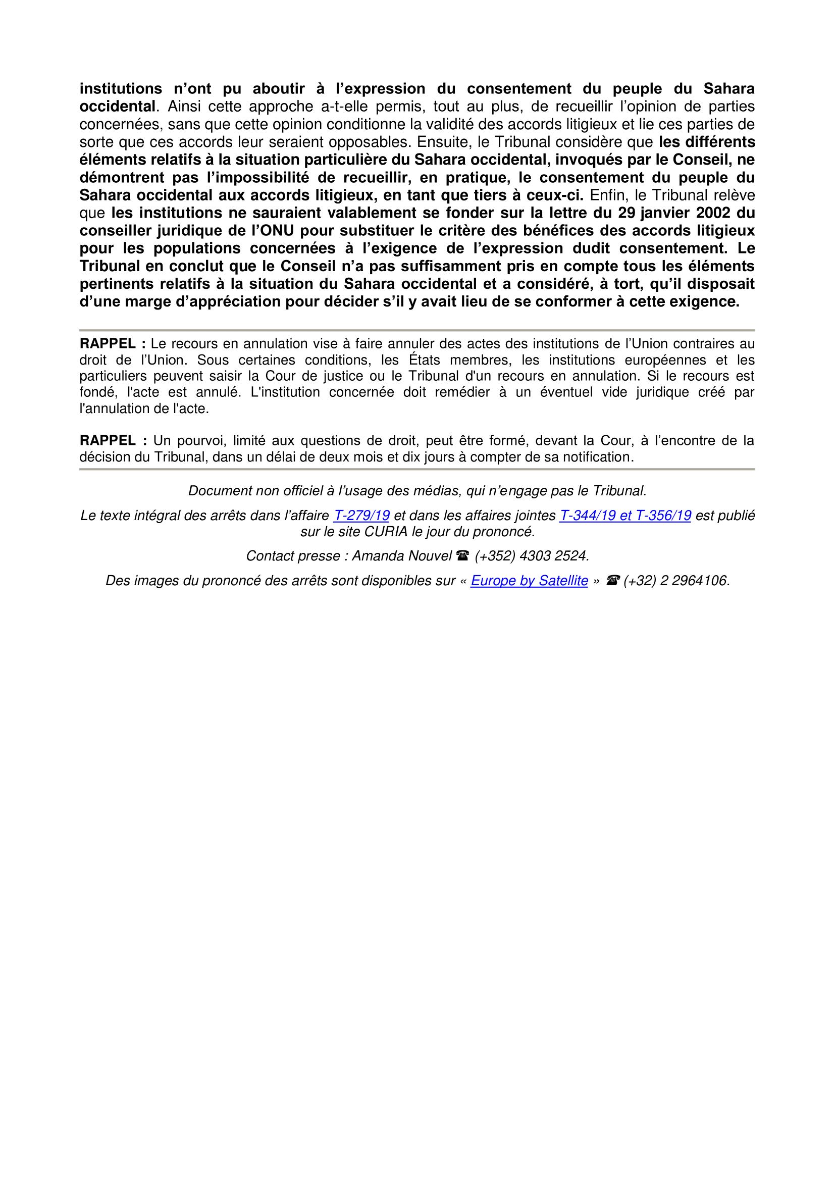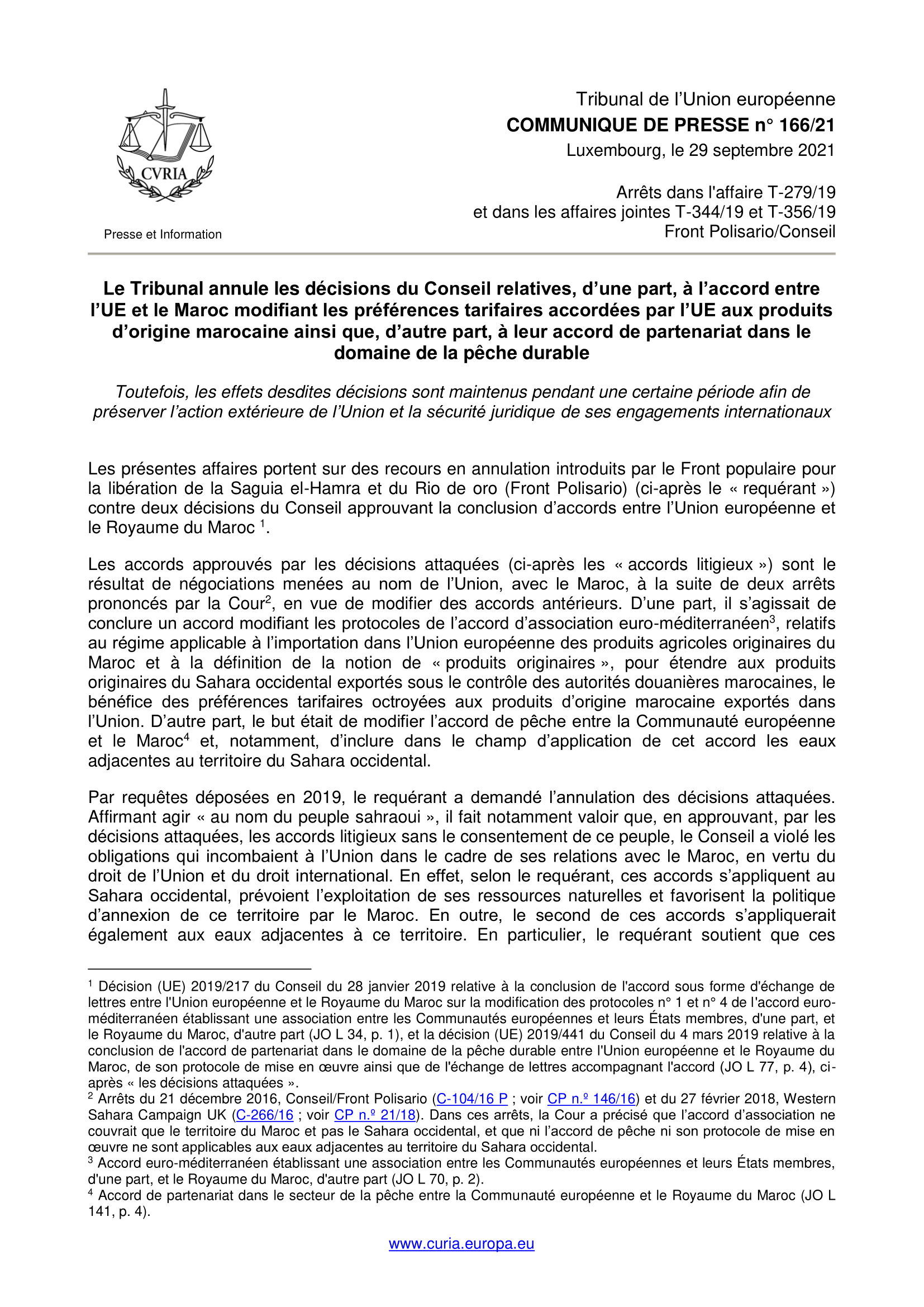 Le Tribunal annule les décisions du Conseil relatives, d’une part, à l’accord entre l’UE et le Maroc modifiant les préférences tarifaires accordées par l’UE aux produits d’origine marocaine ainsi que, d’autre part, à leur accord de partenariat dans le dom