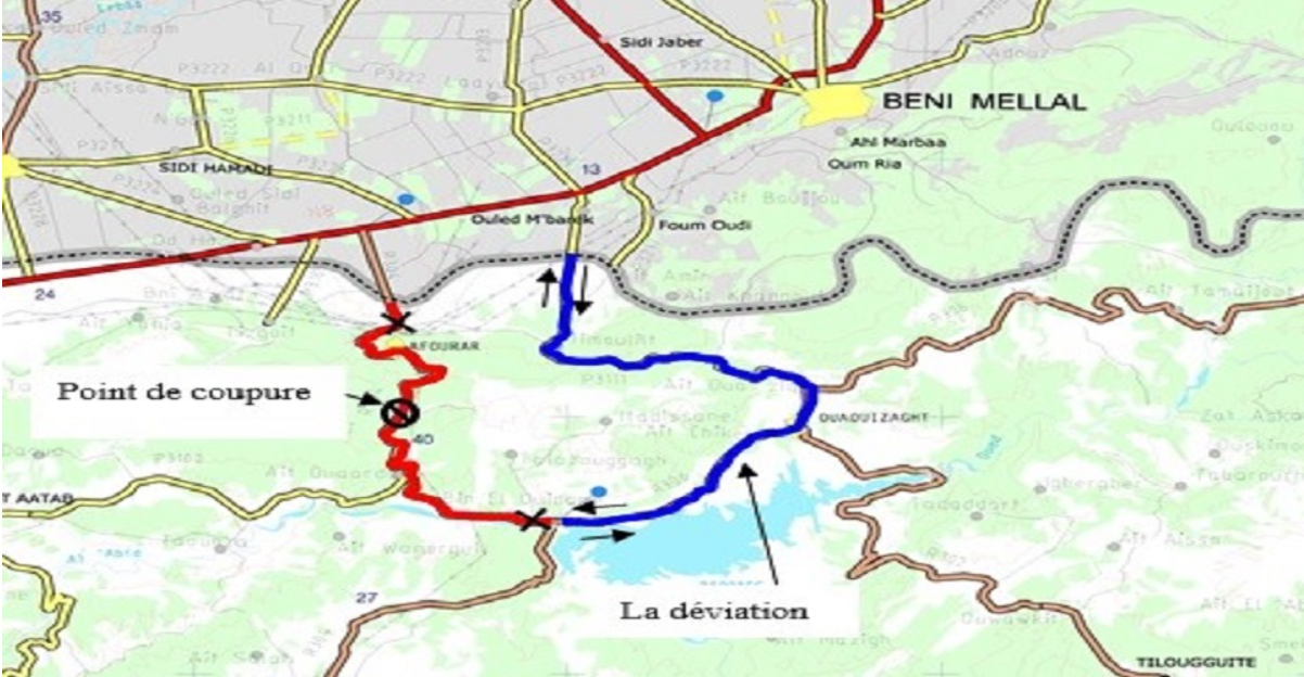 Coupure temporaire de la circulation sur le tronçon reliant Bin El Ouidane à Afourer de la route nationale n° 25