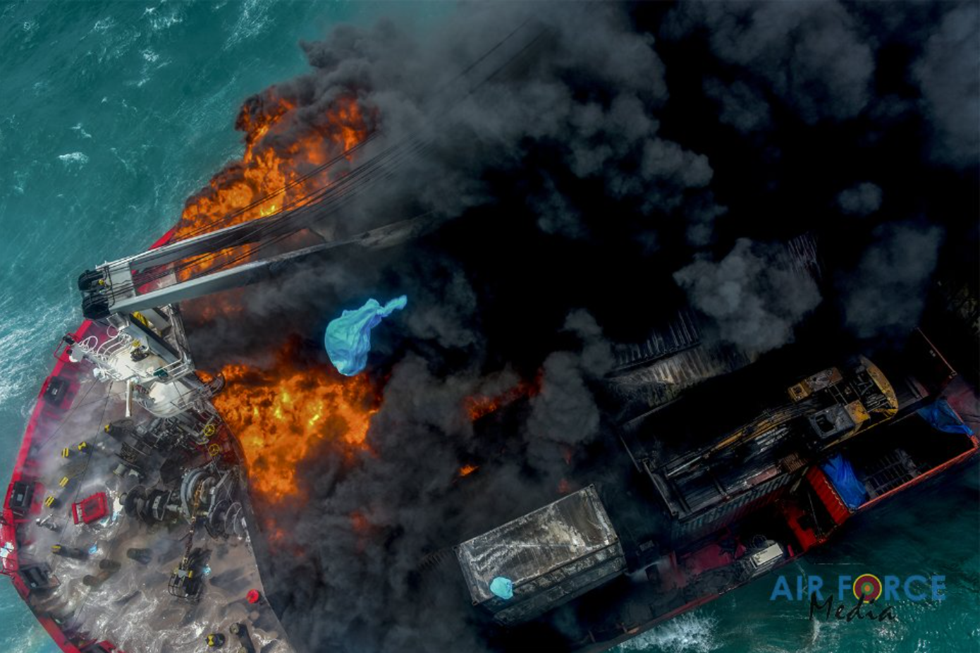 Dans une déclaration aujourd'hui, X-Press Feeders a déclaré que trois remorqueurs de lutte contre l'incendie ainsi que des hélicoptères, la marine sri-lankaise et les garde-côtes indiens poursuivent leurs efforts pour éteindre le feu.