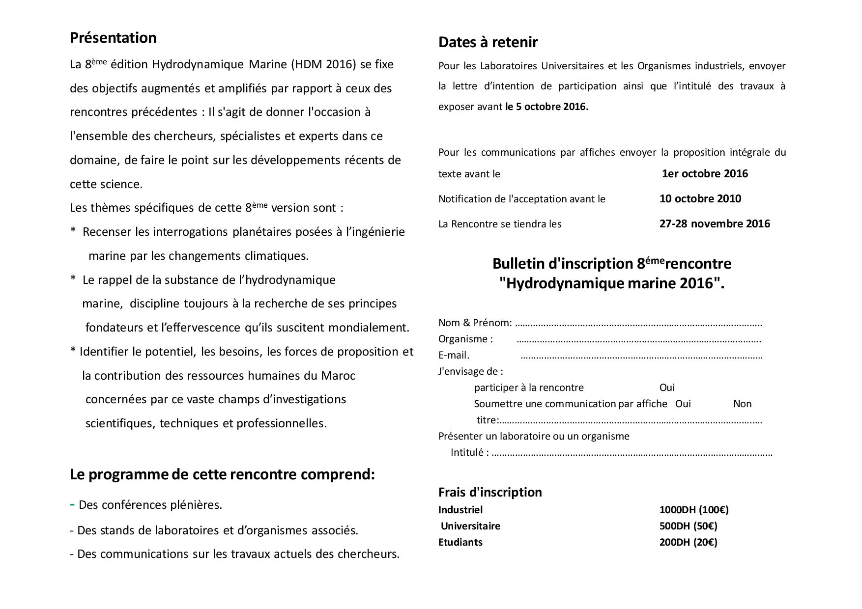 Pour les Laboratoires Universitaires et les Organismes industriels, envoyer la lettre d’intention de participation ainsi que l’intitulé des travaux à exposer avant le 5 octobre 2016.