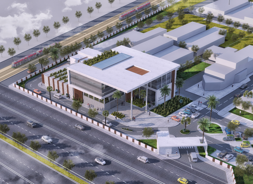 Ce projet d’une esthétique architecturale reflétant l’image de marque de l’institut est composé d’un centre de conférences d’une capacité de 250 places, de 3 salles de formation modulables, et d’un bloc administratif de 36 bureaux et de parkings.