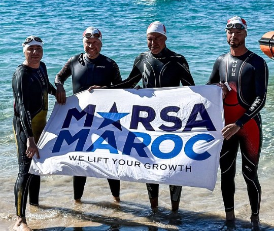 Hicham ALLALI, Officier OM1, et chef de la division engins flottants au port de Mohammedia de Marsa Maroc, a relevé le défi de traverser le détroit de Gibraltar, à la nage, de Tarifa à Tanger !