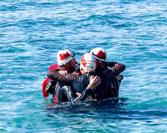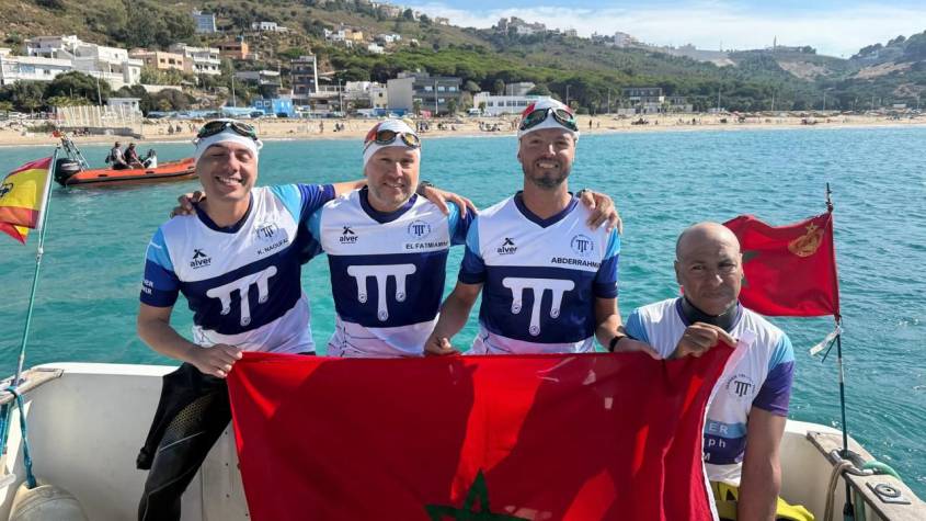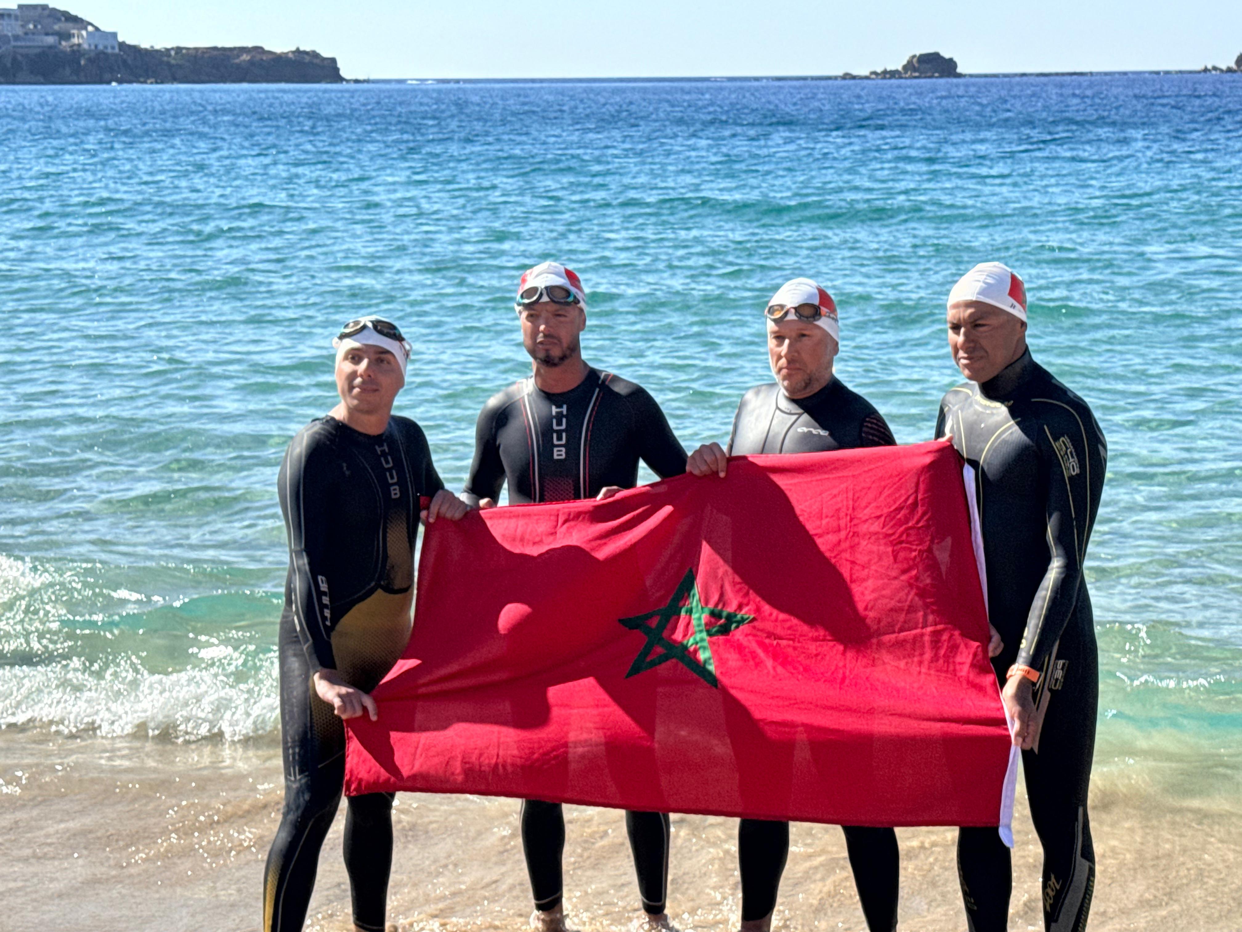 Ainsi, c’est par un temps favorable que l’équipe composée de 4 nageurs : Mohammed Amine El Fatmi, Abderrahman Meziati, Hicham Allali et Naoufal Khouta ont pris le départ de tarifa le mardi 23 Septembre 2025 à 11h57 et sont arrivés dans un temps de 5 heures et 15 minutes à rejoindre les plages de Dalia (Maroc), parcourant une distance totale de 16,6 kilomètres en combinaison. Deux marins, officiers de la Marine Marchande ont relevé ce defi: