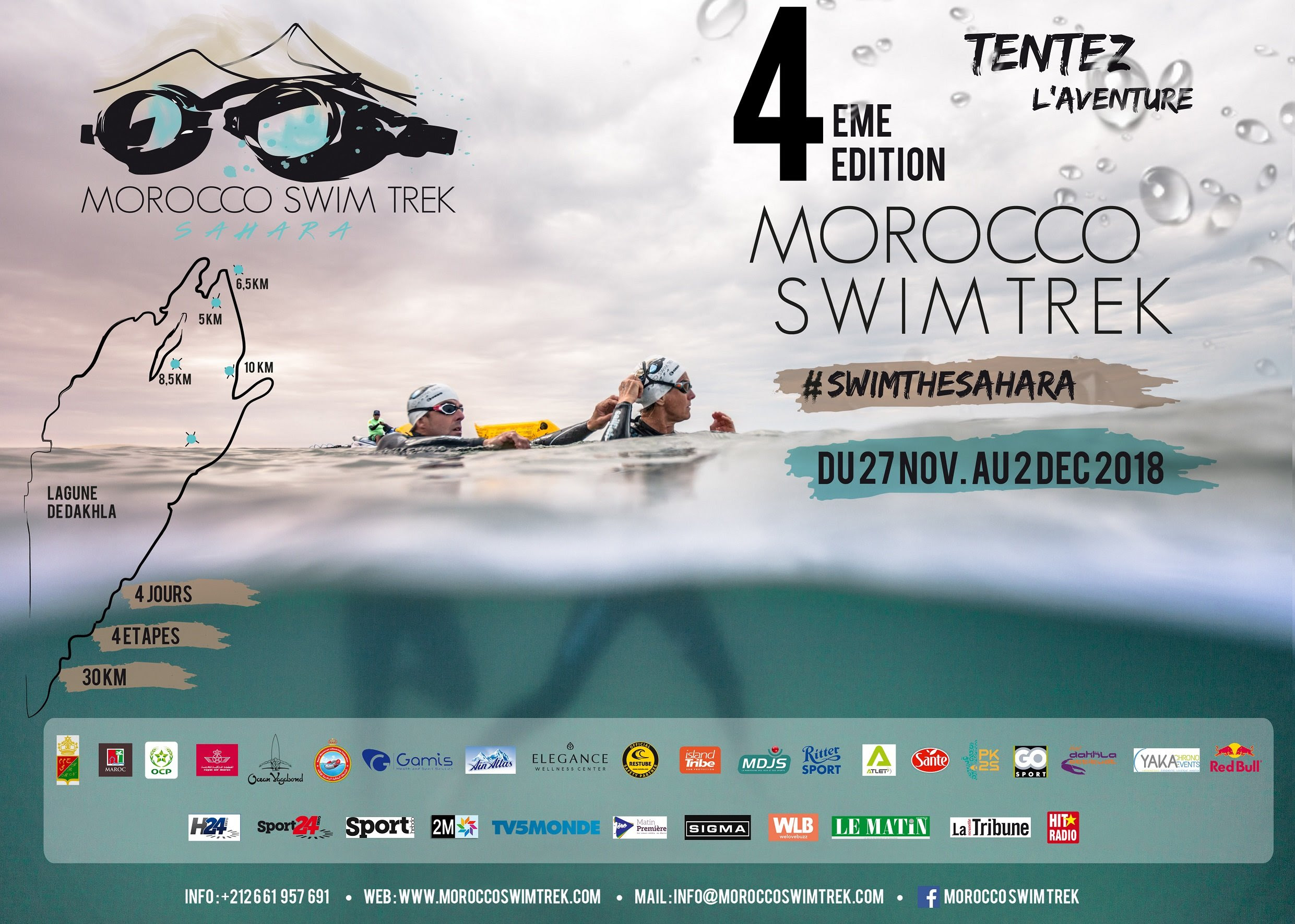 Pour rappel, la 4e édition du Morocco Swim Trek s’est déroulée du 27 novembre au 2 décembre 2018, une course itinérante de natation, Open Water, de 30 kilomètres en eau libre, en 4 étapes dans la lagune de Dakhla : 6.5km, 8,5km, 10km et 5 km.