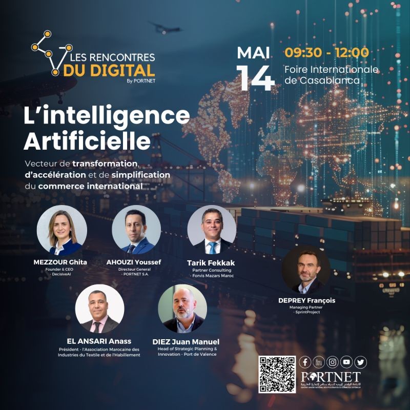 Casablanca, le 14 mai 2025 — En marge du salon LOGISMED dédié au transport et à la logistique, PORTNET S.A. organise une édition spéciale des Rencontres du Digital, qui se tiendra à la Foire Internationale de Casablanca à partir de 9h30.