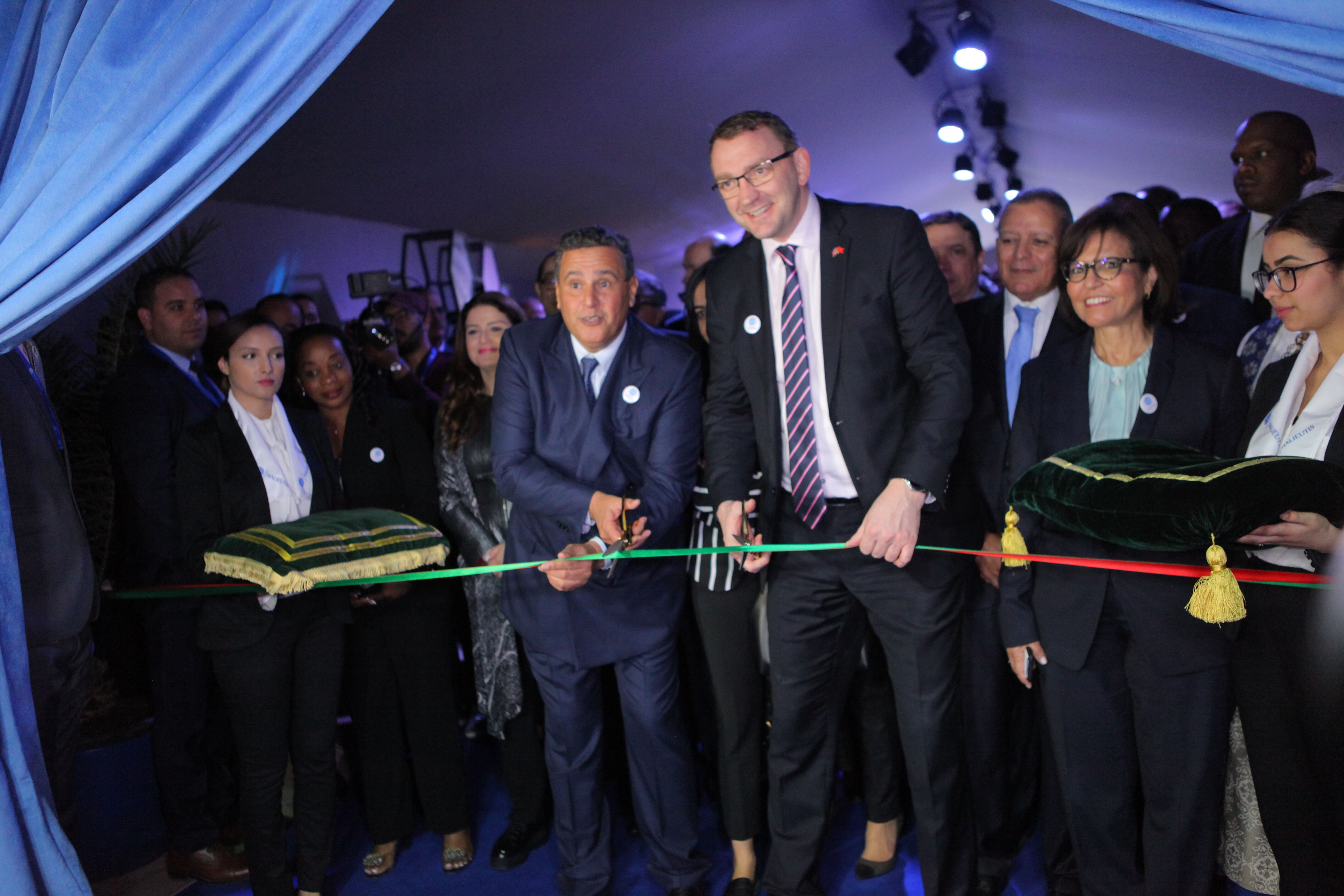M. Akhannouch a ensuite procédé à la visite des six pôles de la manifestation répartis sur une surface de 16 000 mètres carrés et couvrant toute la chaîne de valeur de la pêche : Flotte et Engins, Valorisation et Process, International, Institutionnel, Animation et Innovation.