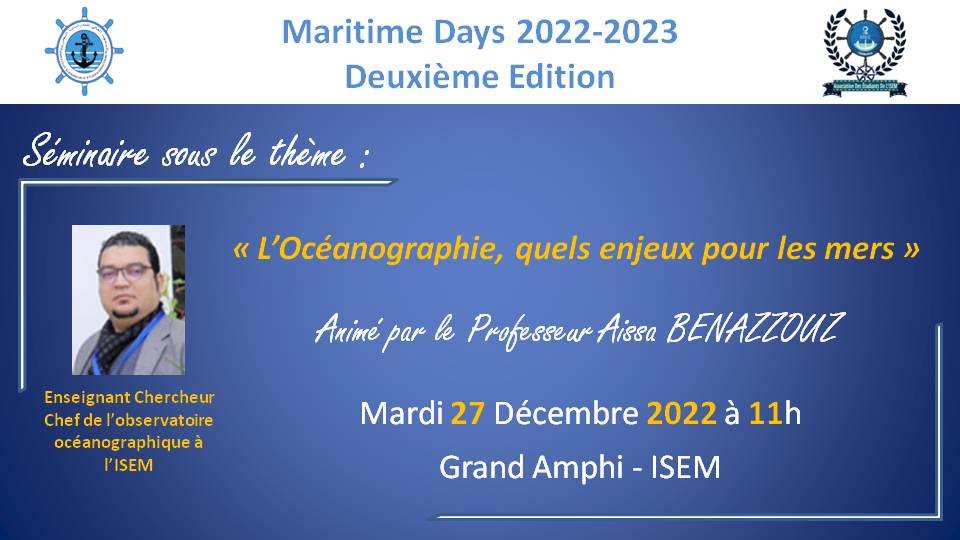 L’Institut Supérieur d’Etudes Maritimes organise la deuxième édition des Maritime Days au titre de l’année académique 2022-2023 sous le thème :
