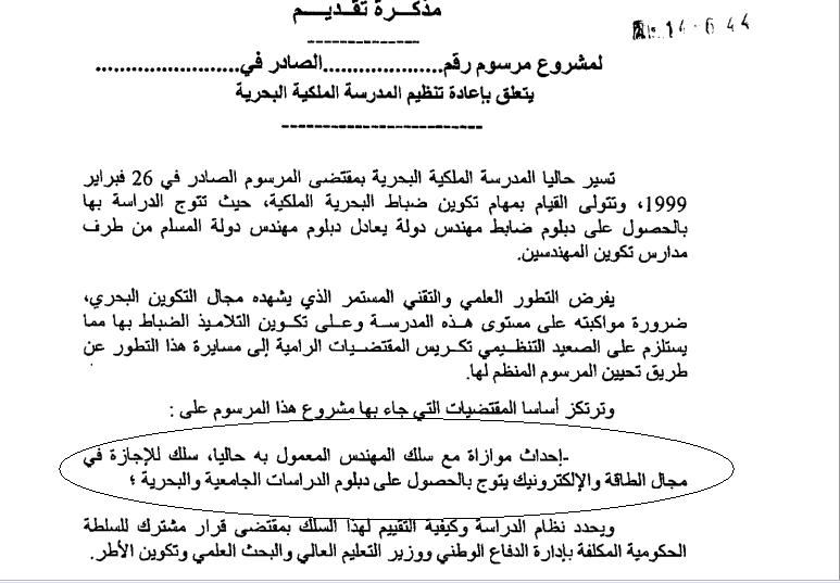 Ainsi, les officiers issus de la formation à l’ERN bénéficiait jusque là, à la fin de leur formation d’un diplôme Bac+5 d’ingénieur d’Etat, cet acquis a été maintenu et consolidé dans le nouveau décret 2.14.644.