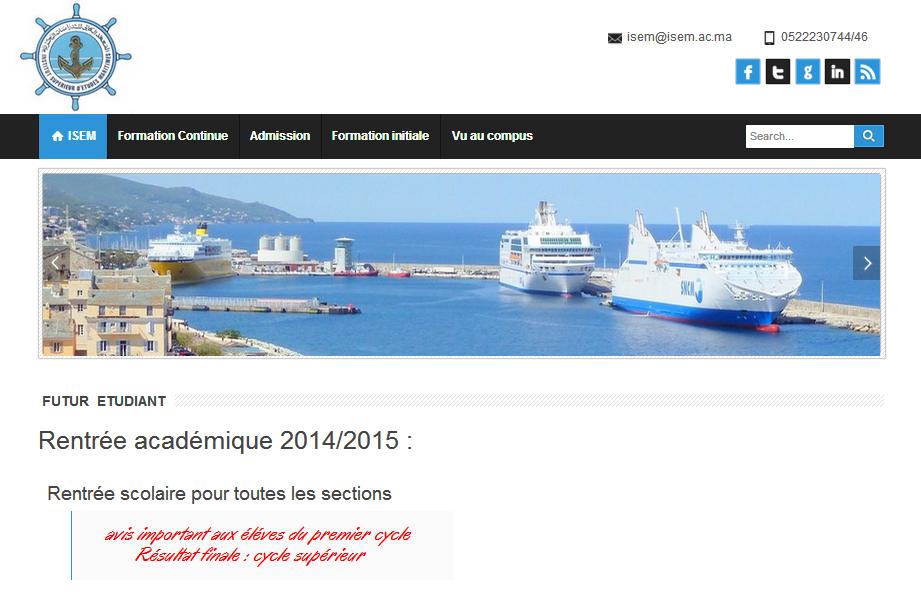 -Et enfin cerise sur le gâteau, une immense photo d’un port français avec un navire de la SNCM à quai à croire que la Maroc ne dispose ni du port de Tanger Med, ni de photos de navires marocains à passagers, Quelle est la relation entre l’ISEM et la France ? Une question à Un Million de Francs Français SVP.
