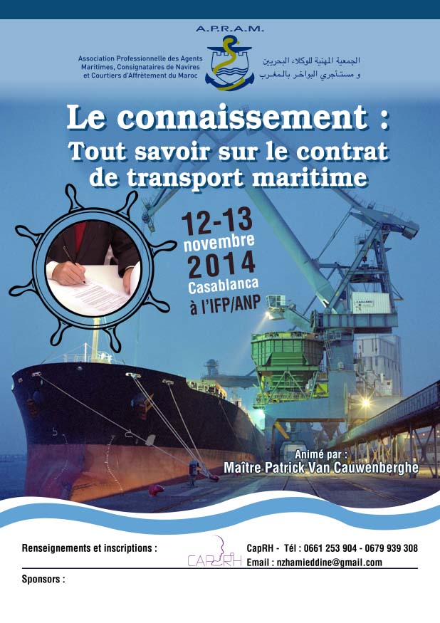 L’Association Professionnelle des Agents Maritimes, Consignataires de Navires et Courtiers d'Affrètement du Maroc (APRAM) lance un vaste programme de formation au profit des professionnels du secteur s’étendant de novembre 2014 à juin 2015.