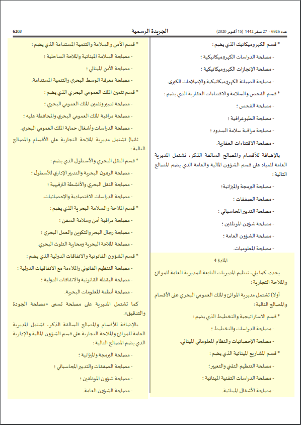 قرار وزير التجهيز والنقل واللوجستيك والماء بتحديد وتنظيم المديريات التابعة للمديرية العامة للموانئ والملاحة التجارية