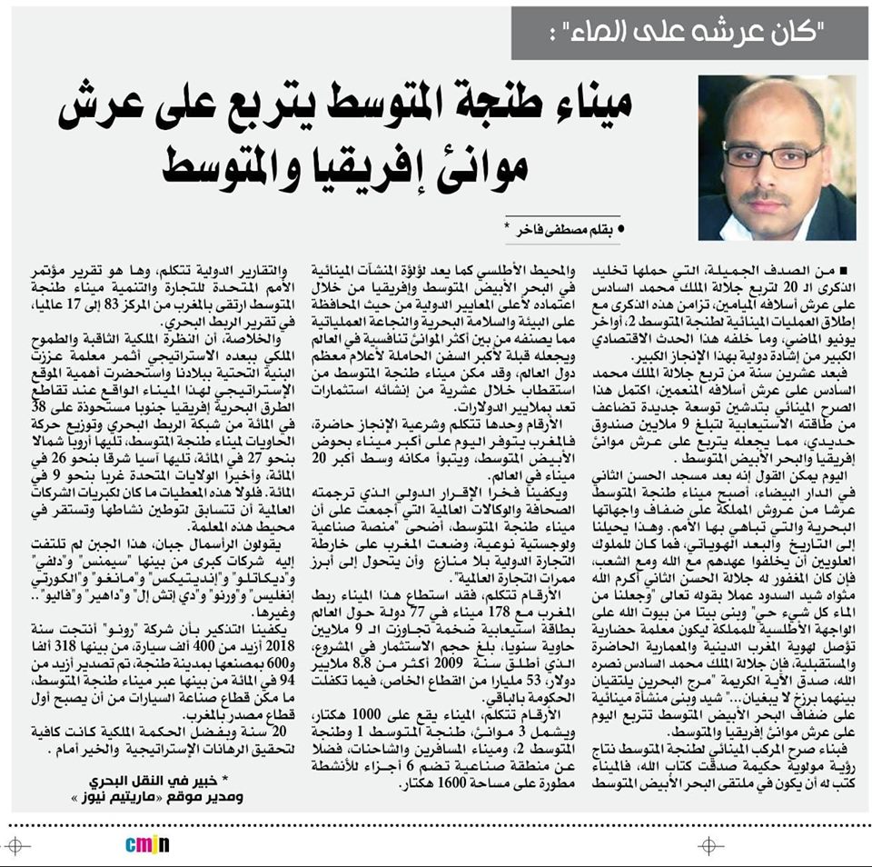 اليوم يمكن القول، أن بعد مسجد الحسن الثاني في الدار البيضاء، أصبح ميناء طنجة المتوسط عرش من عروش المملكة على ضفاف واجهاتها البحرية و التي تباهي بها الأمم.