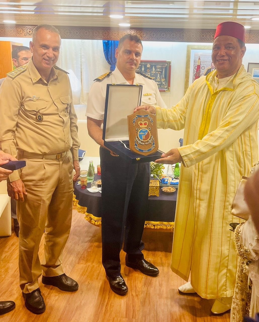L’ambassadeur de Sa Majesté le Roi à Dakar, Hassan Nassiri, accompagné de l'attaché militaire à l'ambassade du Royaume à Dakar, étaient invités à bord de la frégate Mohammed V F611, où l'équipage de la frégate, dirigé par le colonel Al-Dabbagh, commandant de l'unité, leur a réservé un accueil chaleureux.