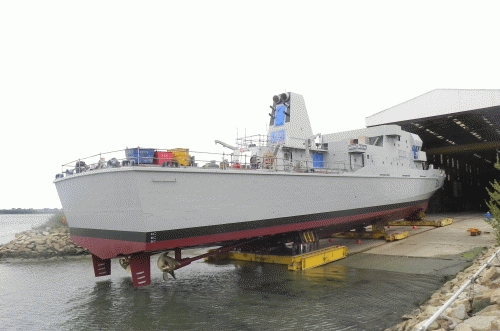 Le site Mer et Marine vient de révéler la mise à flot le 25 août, du premier patrouilleur du type OPV 70 construit au chantier STX France de Lorient pour le compte de Raidco Marine au profit de la Marine Royale.