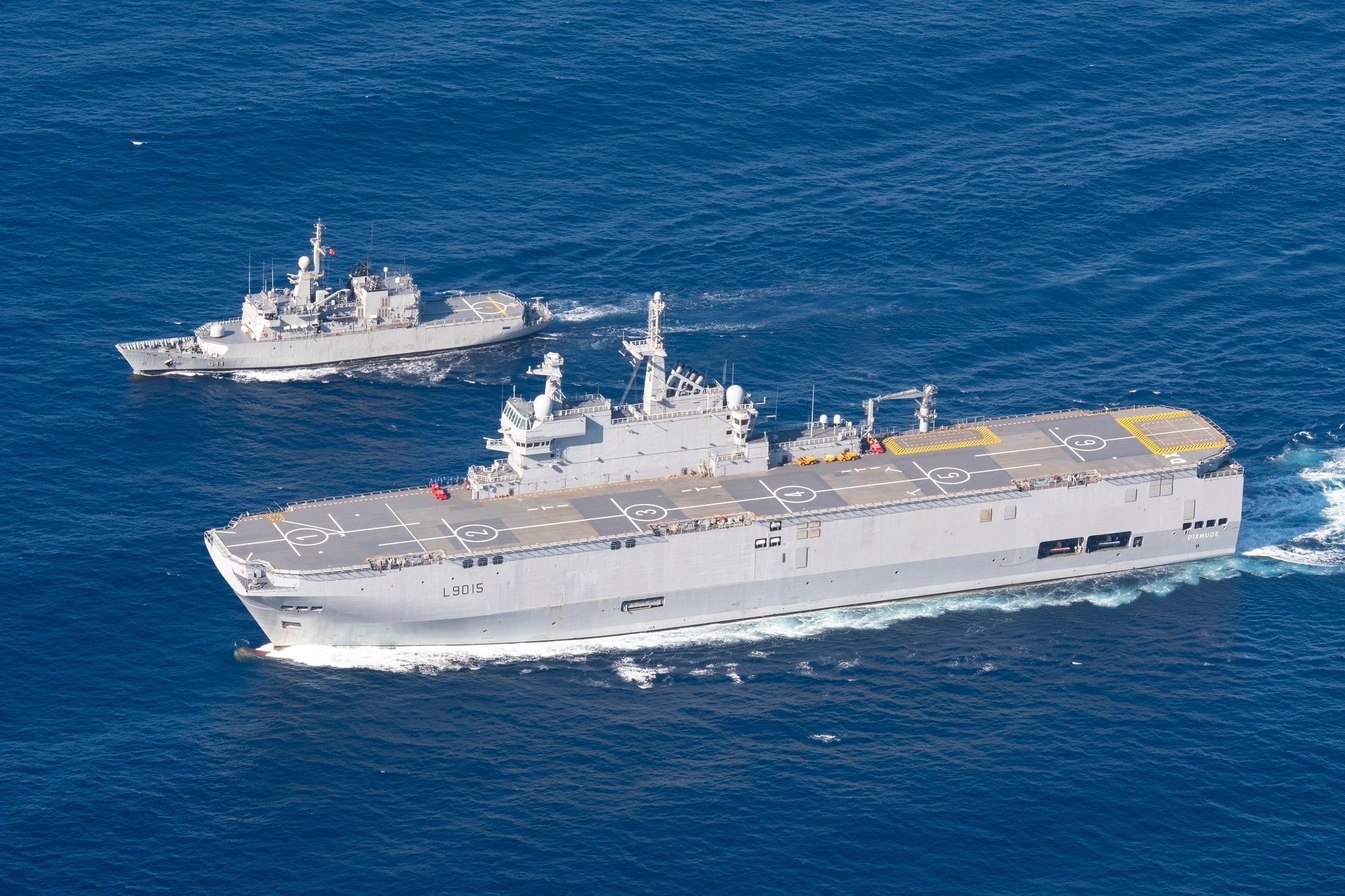 قامت الفرقاطة محمد الخامس F611 و حاملة المروحيات الفرنسية DIXIMUDE بتمرين عابر في السواحل المغربية في إطار مهمة كوريمب الفرنسية في دوريتها 154.
