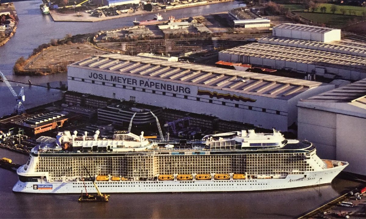 Particularité du site de Papenbourg: il est situé dans les terres, à environ 40 kilomètres des côtes et les bateaux du chantier naval empruntent le fleuve Ems pour gagner la mer.