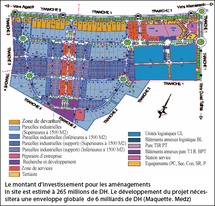D'un potentiel de transformation de 500.000 tonnes, ce mégaprojet s'étend sur 150 Ha dans la commune de Drarga (aux environs d'Agadir) et prévoit la création de plus de 20.000 emplois avec un coût global d'investissement de 6,6 milliard de dh.