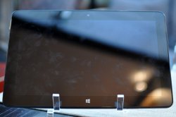 Ces deux tablettes ont également en commun un capteur arrière de 5 millions de pixels et une webcam frontale de 1,2 million de pixels. Le revêtement plastique noir ou rouge de ces deux tablettes fait bonne impression avec ses cercles concentriques qui rajoutent du grip à l'utilisation. Toujours dans les points communs, on trouve des puces WiFi a/b/g/n et Bluetooth 4.0 qui apporteront aussi la compatibilité avec Miracast et WiDi pour la transmission vidéo sans fil. La tablette pèse 390 grammes environ et mesure 9 mm d'épaisseur. Elles seront disponibles au mois de novembre au prix de 179,99$ pour la version 8 et 299,99$ pour la version Pro.