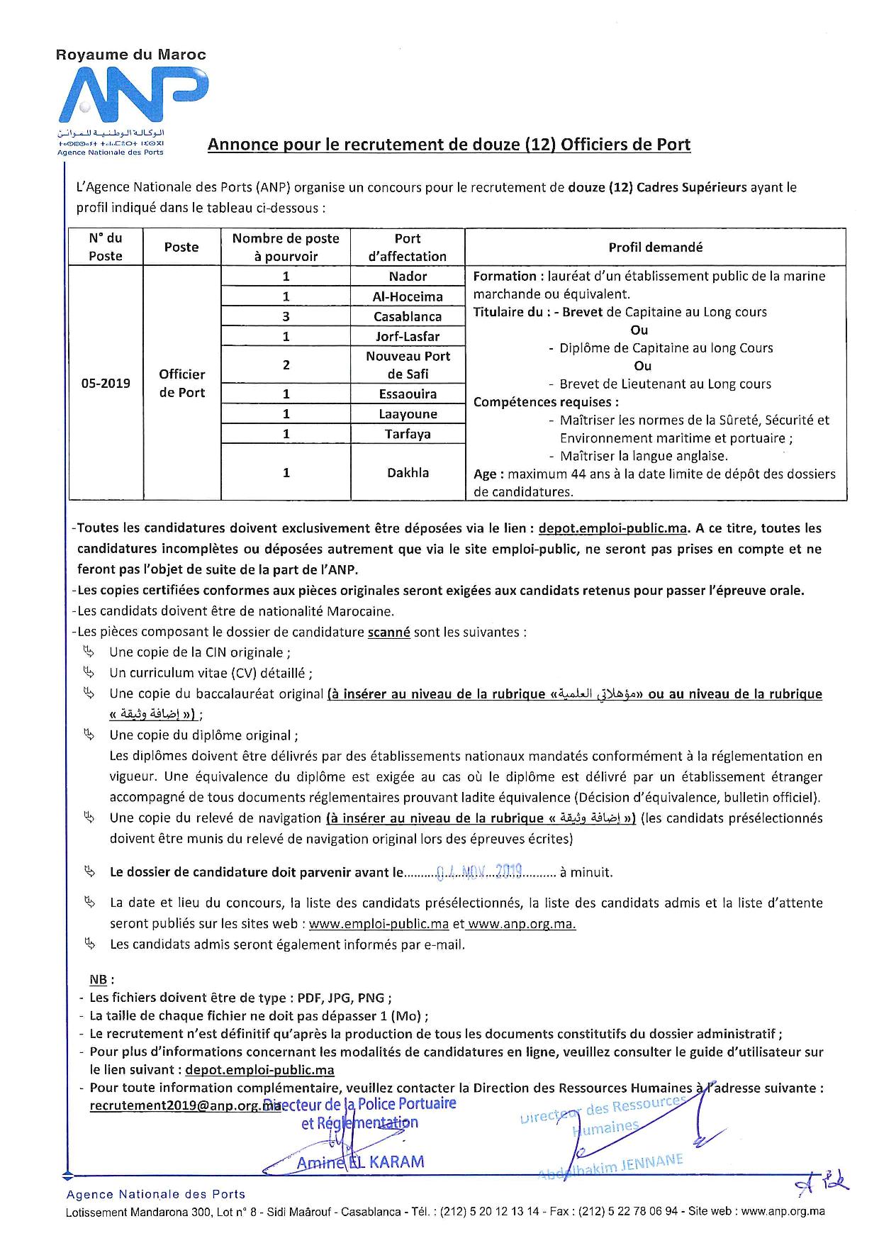 - Contact de l'annonceur: recrutement2019@anp.org.ma