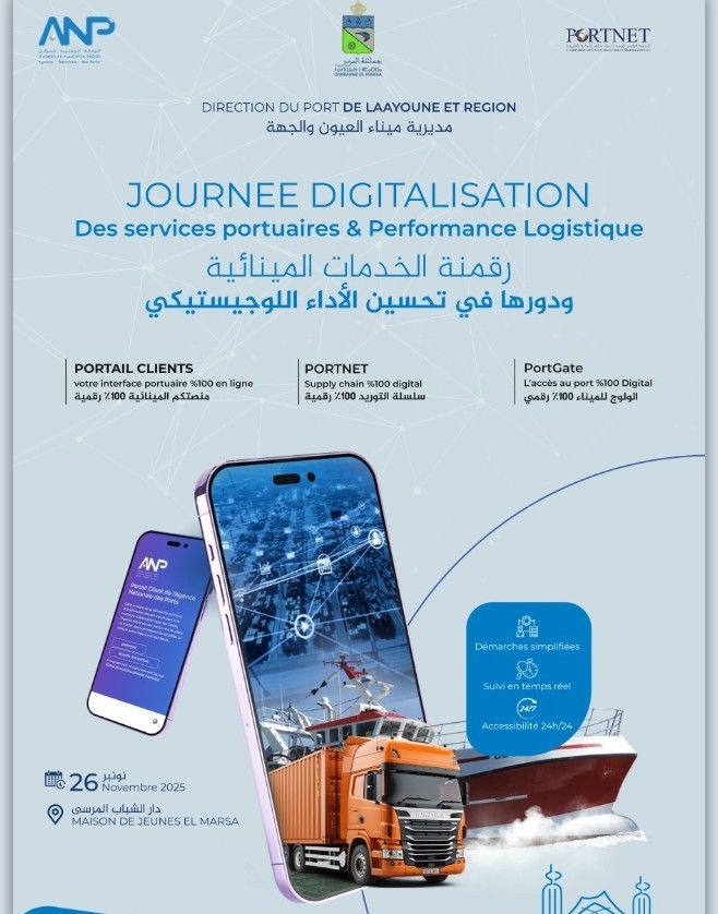 La ville de Laâyoune abritera, le 26 novembre 2025, la Journée de la Digitalisation des Services Portuaires et de la Performance Logistique, un événement majeur organisé par l’Agence Nationale des Ports (ANP).