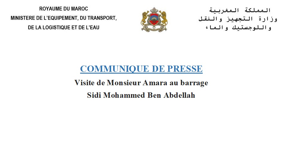 Monsieur Abdelkader Amara, Ministre de l’Equipement, du transport, de la Logistique a effectué une visite au barrage Sidi Mohammed Ben Abdellah aux environs de Rabat, et qui assure l’alimentation en eau potable de plus de 8 millions d’habitant.