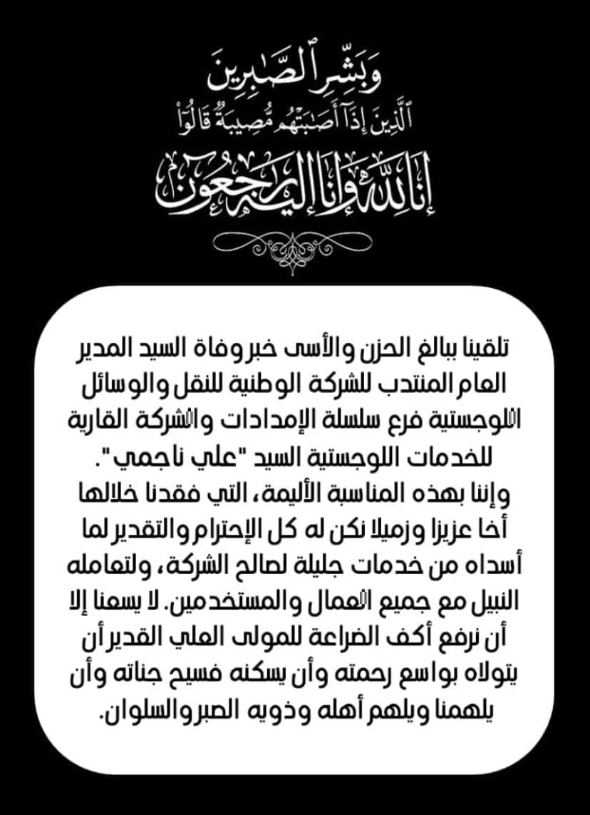 En cette douloureuse occasion, la communauté logistique du Maroc et d’Afrique ne peut que s’associer à la douleur de sa petite famille et lui exprimer toute sa compassion.