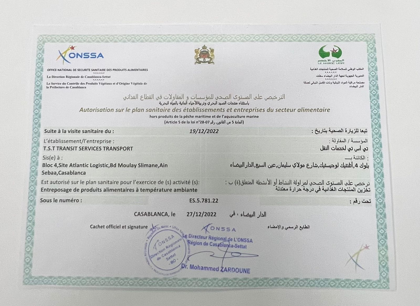 En ce début d'année 2023, TST a obtenu l'autorisation ONSSA pour le stockage des produits alimentaires à température ambiante dans leur MEAD à Atlantic Logistic.
