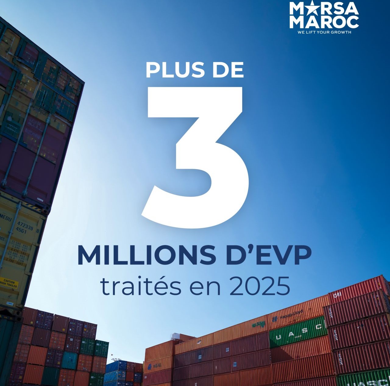 Les différents terminaux à conteneurs de Marsa Maroc a Casablanca, Tanger Med, Nador et Agadir ont traités plus de des 3 millions d’EVP (Équivalent Vingt Pieds) en 2025 confirmant la dynamique soutenue que connaît l’activité portuaire.