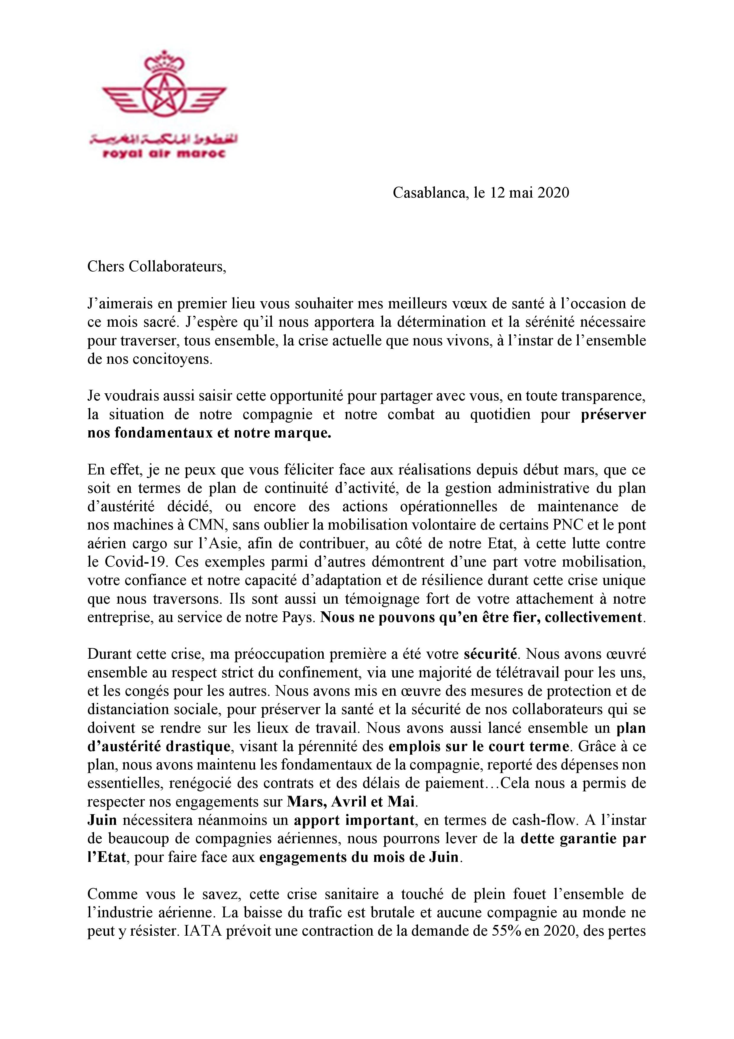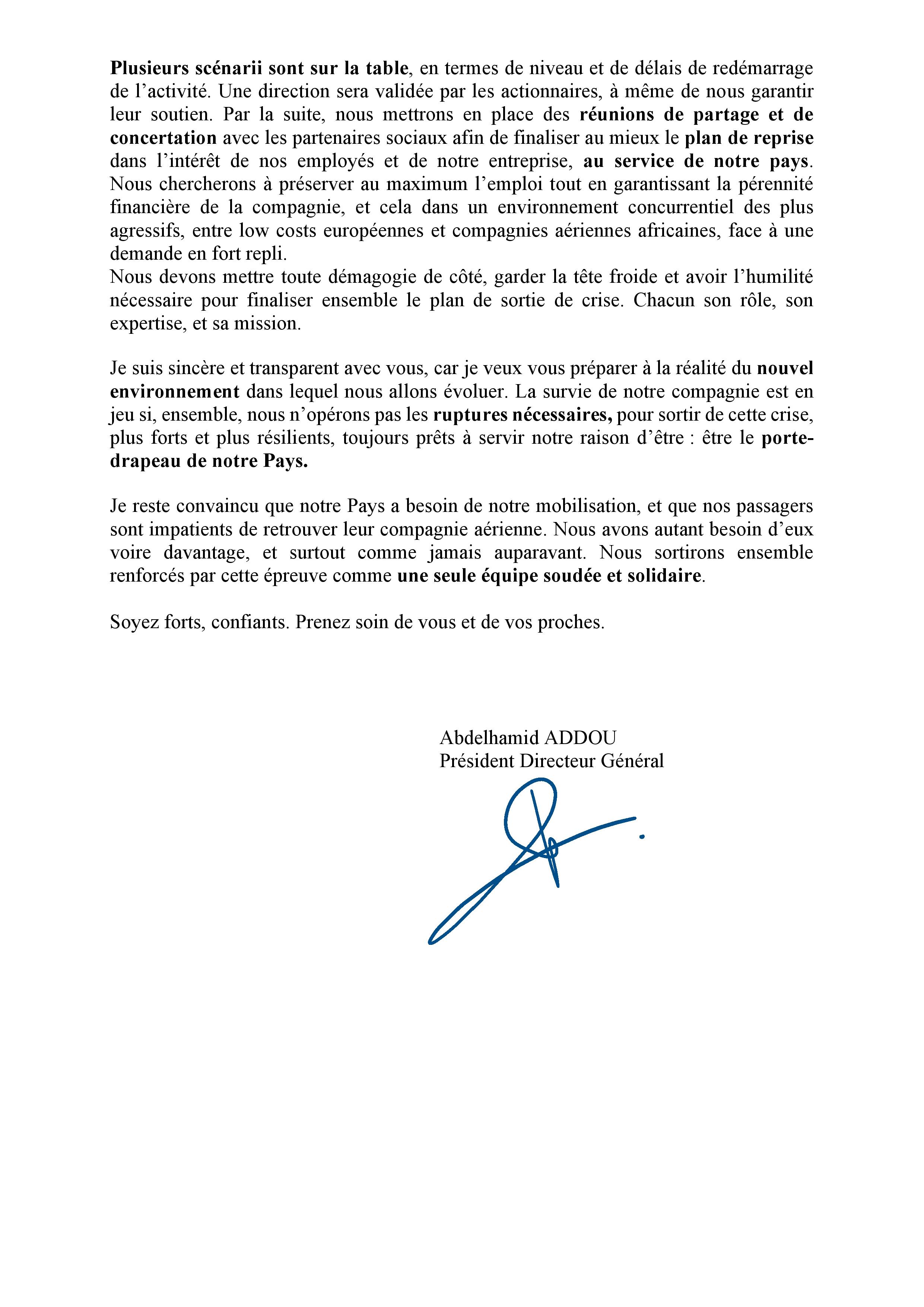 Message de Monsieur Abdelhamid ADDOU, le président de la RAM, à l'attention du personnel