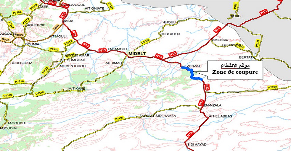 Le Ministère de l’Equipement et de l’Eau annonce que la circulation sera coupée pendant une durée de 3 heures, le dimanche 23 Janvier 2022 de 09h00 à 12h00 sur le tronçon routier reliant Midelt à Errich de la route nationale n° 13 au niveau du col Tizi N’talghomt relevant de la commune territoriale Amersid – Province de Midelt. Ladite coupure va permettre la réalisation des travaux de terrassement dans le cadre de l’élargissement et du renforcement de ce tronçon.