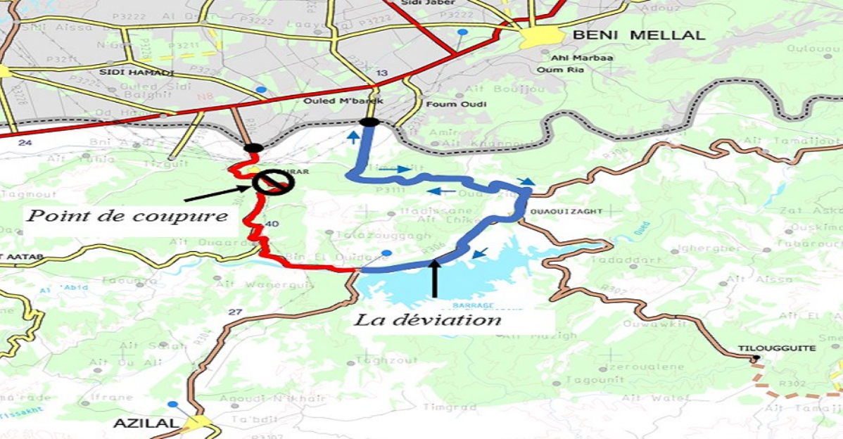 Coupure temporaire de la circulation sur le tronçon reliant Bin El Ouidane à Afourer de la route nationale n° 25
