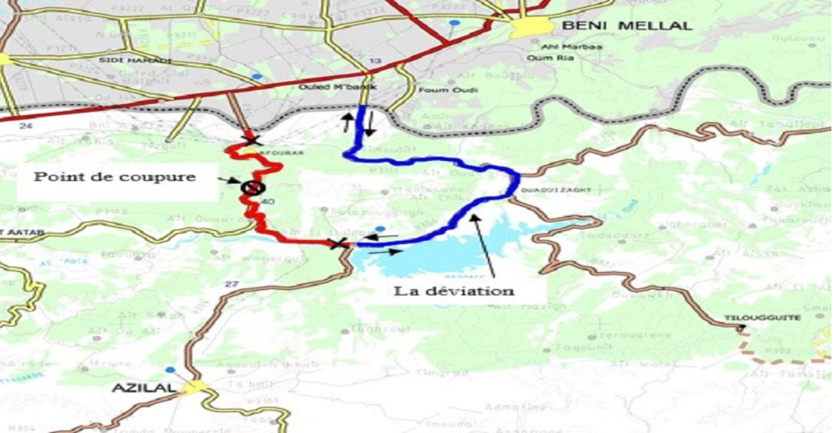 Coupure temporaire de la circulation sur le tronçon reliant Bin El Ouidane à Afourer de la route nationale n° 25