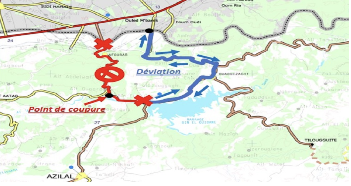 Déviation localisée de la circulation routière sur la route nationale n°25 section reliant Bin El Ouidane à Afourer - Commune Ait Ouaerda