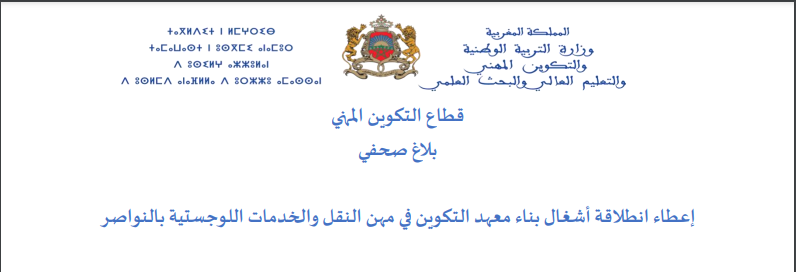 إعطاء انطالقة أشغال بناء معهد التكوين في مهن النقل و الخدمات اللوجستية بالنواصر
