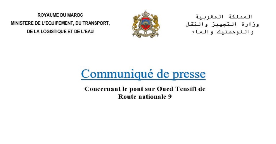 Communiqué de presse concernant le pont sur Oued Tensift de Route nationale 9