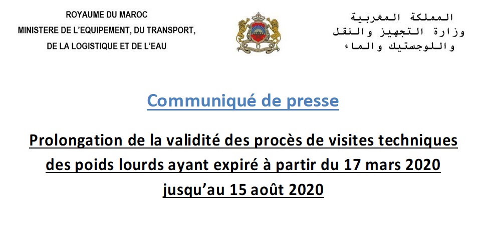 Prolongation de la validité des procès de visites techniques des poids lourds ayant expiré à partir du 17 mars 2020 jusqu’au 15 août 2020
