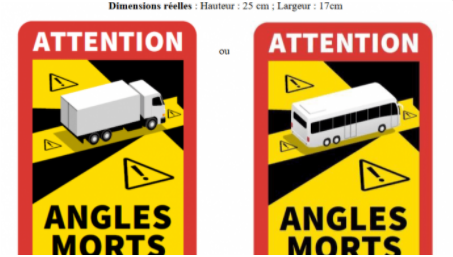 Comme prévu, un arrêté ministériel du 5 janvier 2021 rend obligatoire pour tous les véhicules lourds de plus de 3,5 tonnes l'apposition d'un panneau visible sur les côtés et à l'arrière du véhicule indiquant la position des angles morts.