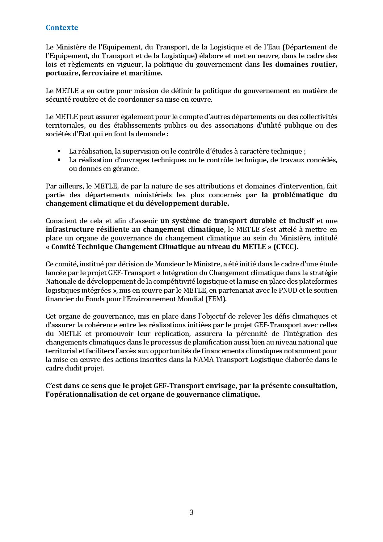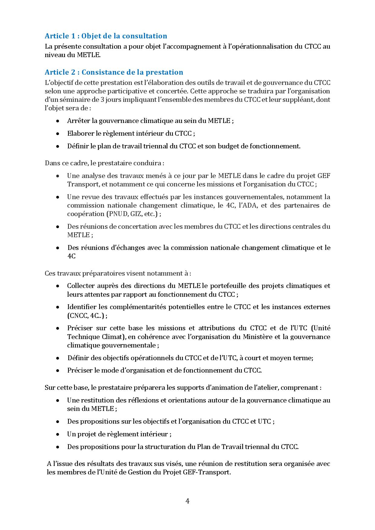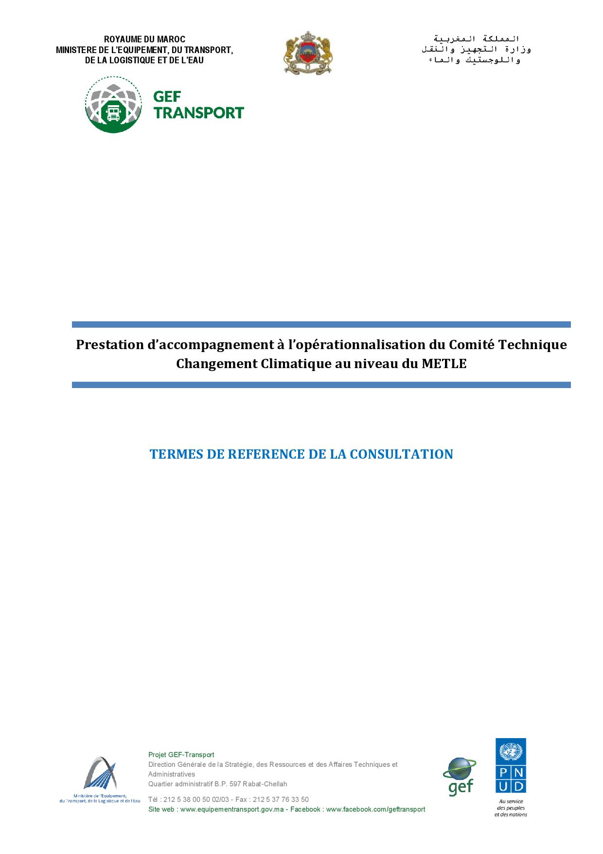 Prestation d’accompagnement à l’opérationnalisation du Comité Technique Changement Climatique au niveau du METLE