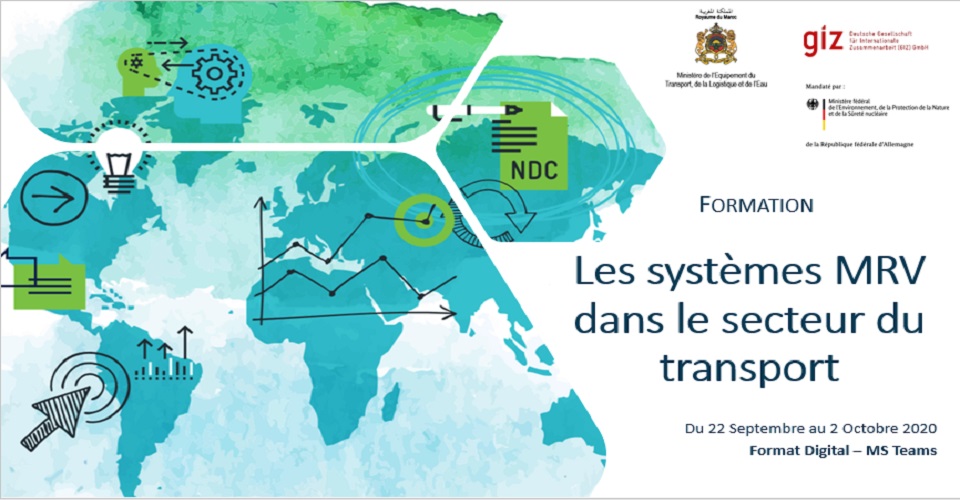 S’inscrivant dans le cadre des activités du projet TraCS Maroc, « Promouvoir les stratégies climatiques du secteur des transports dans les pays à motorisation rapide », notamment sa composante visant le développement d'une base de données et d'un système d'inventaire des émissions du secteur du transport, le Ministère de l’Equipement, du Transport, de la Logistique et de l’Eau a organisé, conjointement avec la GIZ (l’Agence Allemande de Coopération Internationale), une formation à distance sous le thème : «Les systèmes MRV (Mesure, Notification et Vérification) dans le secteur du transport».