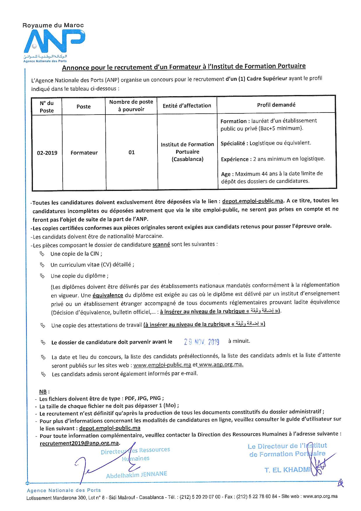 - Contact de l'annonceur: recrutement2019@anp.org.ma