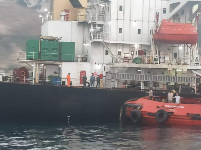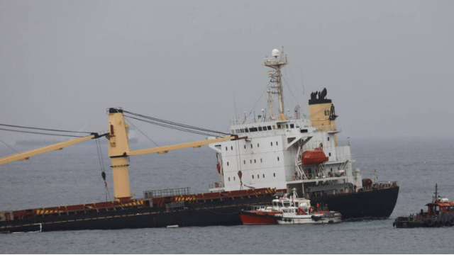 La proue du navire repose désormais sur le fond marin à une profondeur de 17 mètres. Vingt-quatre personnes se trouvent à bord du pétrolier et se portent bien, selon une déclaration du capitaine aux autorités.
