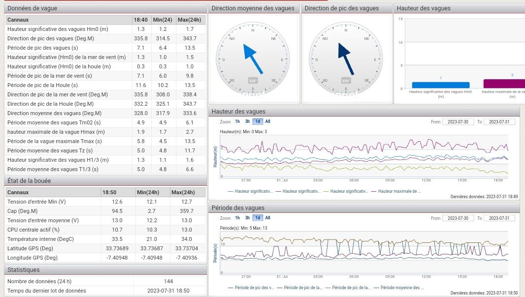 Les données du réseau des bouées Holographiques (13 bouées) seront disponibles au service de la communauté portuaire et scientifique nationale, à travers un système de communication de collecte et de diffusion des données basé sur le 4G et le VHF.