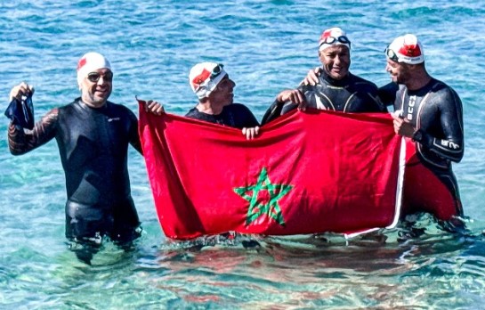 Ainsi, c’est par un temps favorable que l’équipe composée de 4 nageurs : Mohammed Amine El Fatmi, Abderrahman Meziati, Hicham Allali et Naoufal Khouta ont pris le départ de tarifa le mardi 23 Septembre 2025 à 11h57 et sont arrivés dans un temps de 5 heures et 15 minutes à rejoindre les plages de Dalia (Maroc), parcourant une distance totale de 16,6 kilomètres en combinaison. Deux marins, officiers de la Marine Marchande ont relevé ce defi: