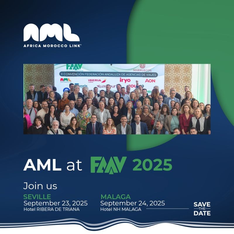 Africa Morocco Link (AML) a annoncé sa participation au Federación Andaluza de Agencias de Viajes (FAAV) Roadshow 2025 qui se tiendra respectivement le 23 & 24 Septembre à Seville et Malaga. Cet événement majeur du secteur touristique et du voyage constitue une plateforme privilégiée pour renforcer les partenariats et promouvoir les solutions de mobilité entre l’Europe et le Maroc.
