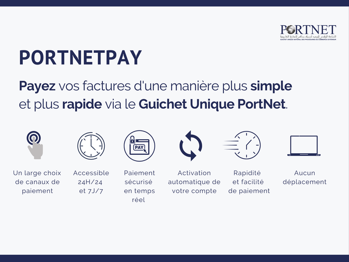 Dans le cadre de notre démarche de simplification, de digitalisation des procédures logistique et du commerce extérieur ainsi que dans la continuité des actions menées pour généraliser le service de paiement électronique auprès de l’ensemble de l'écosystème du commerce international, PORTNET S.A vient de mettre en place le service du paiement multicanal, via PORTNETPAY, au profit de Transport Rapide Oriental.