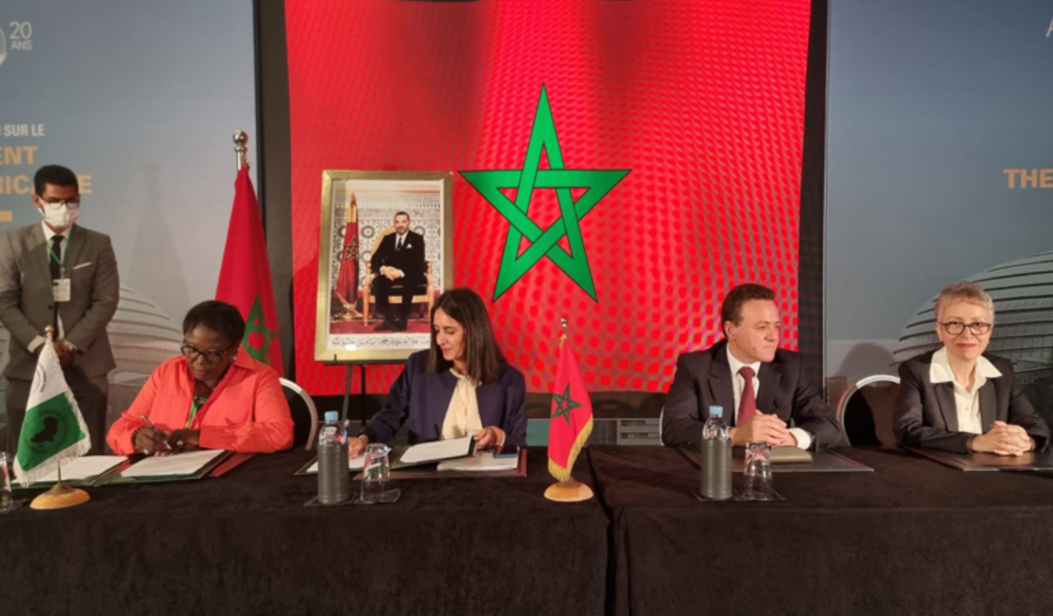 Madame Nadia FETTAH Ministre de l’Economie et des finances et Madame Yacine FAL, Vice-Présidente par intérim chargée du Développement régional, de l’Intégration et de la Prestation de services du Groupe de la Banque africaine de développement (BAD). ont procédé, le lundi 13 juin 2022, à la signature de la documentation juridique relative aux projets de construction du complexe portuaire Nador West Med à réaliser par la Société Nador West Med (SNWM) et d’extension et de modernisation de l’aéroport de Rabat-Salé à réaliser par l’Office National des aéroports (ONDA).