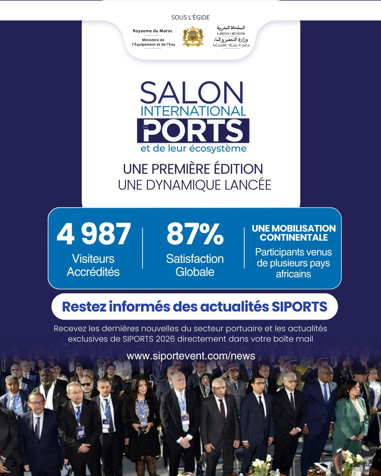 La première édition du Salon International des Ports et de leur écosystème (SIPORTS), organisée sous l’égide du Royaume du Maroc, s’est imposée comme un rendez-vous majeur pour les acteurs du secteur portuaire, confirmant dès son lancement son positionnement stratégique à l’échelle nationale et africaine.